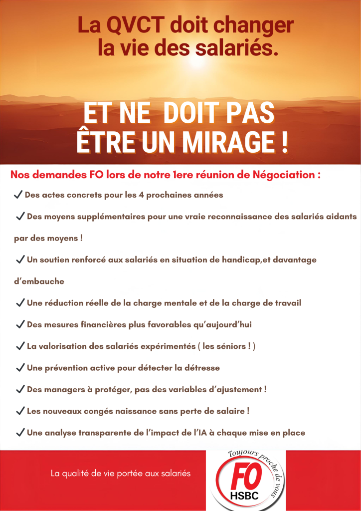 Depuis le début de Février 2026 nos négociateurs FO , ont mis sur la table les demandes suivantes: